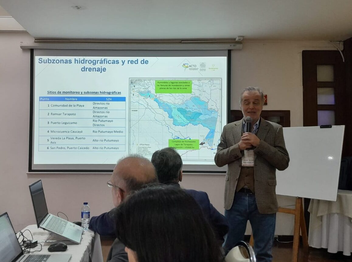 Nos dias 5 e 6 de março de 2026, a cidade de Bogotá, na Colômbia, sediou um encontro técnico que reuniu especialistas e instituições para compartilhar avanços e identificar oportunidades e desafios na implementação de um sistema participativo de monitoramento nos rios Putumayo e Amazonas. A atividade foi realizada no âmbito da intervenção nacional do Projeto Bacia Amazônica (OTCA/PNUMA/GEF), que buscou fortalecer o conhecimento socioambiental em comunidades ribeirinhas que utilizam recursos pesqueiros compartilhados nessas bacias, bem como promover o monitoramento de ecossistemas aquáticos, com vistas à construção de diretrizes conjuntas para a gestão dos recursos hidrobiológicos entre as autoridades pesqueiras e ambientais da Colômbia e do Peru.
