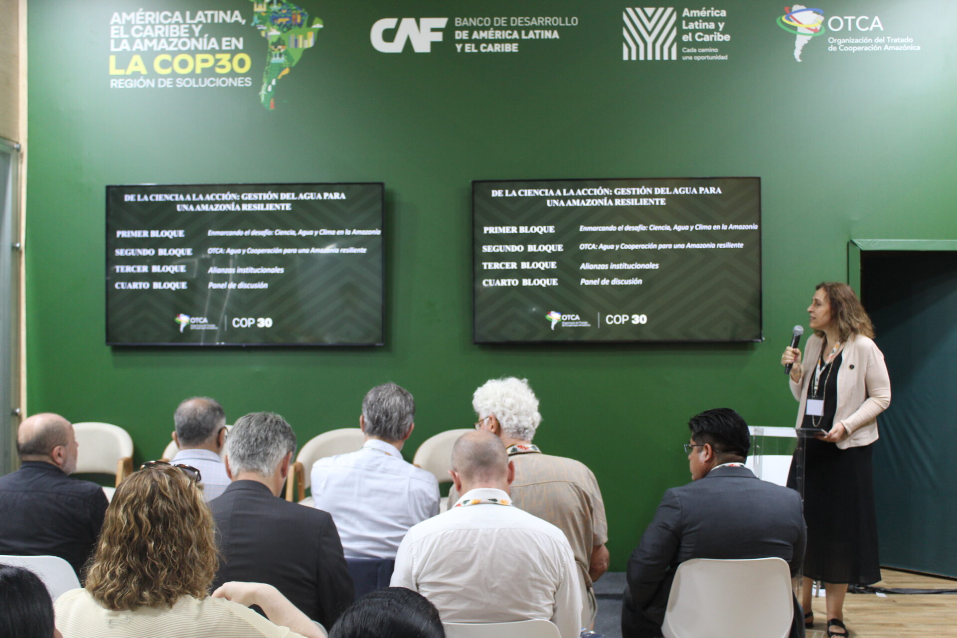 ACTO Administrative Director Edith Paredes presented the Amazon Aquifer Systems Project (AAS), launched during COP-30 and scheduled for implementation in 2026, with support from the GEF and the IDB. The initiative will further the SAP implementation agenda, strengthening knowledge and management of groundwater in the Amazon basin, a component that is still under-explored but strategic for regional water security. “We need to know how the Amazon Aquifer System works, what its role is in the water cycle, what its main sources of contamination are, what the social perception of its importance is, and whether our institutions are prepared to manage it,” Paredes said.