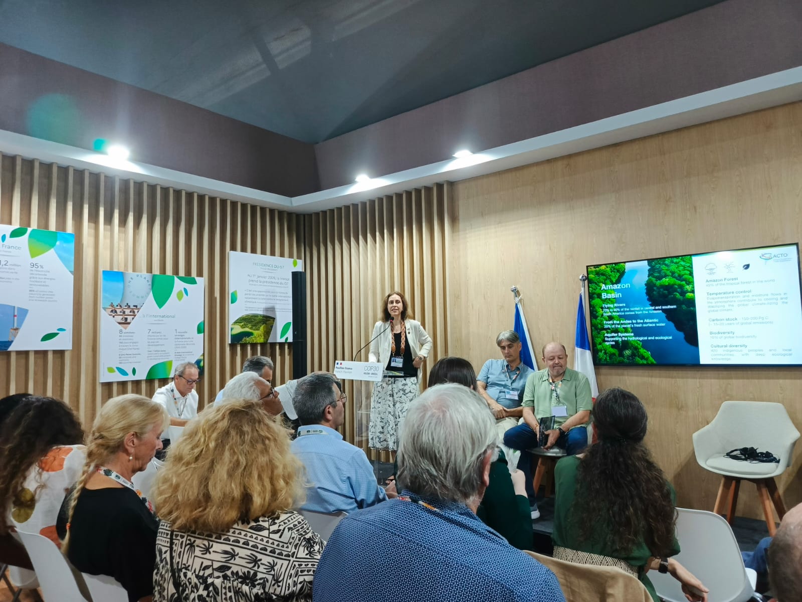 El proyecto también participó en otros dos eventos paralelos a la conferencia, ampliando el debate sobre la gobernanza del agua, la ciencia y la adaptación climática en la cuenca del Amazonas. En el evento «Ríos en crisis climática: soluciones para un futuro sostenible», promovido por el Instituto Francés de Investigación para el Desarrollo (IRD), la Red Internacional de Organismos de Cuencas Hidrográficas (INBO) y la Initiative pour l’Avenir des Grands Fleuves (Iniciativa para el Futuro de los Grandes Ríos), Apostolova presentó las estrategias en curso para fortalecer la cooperación regional en el marco de la OTCA y promover una gestión sostenible de las aguas amazónicas.