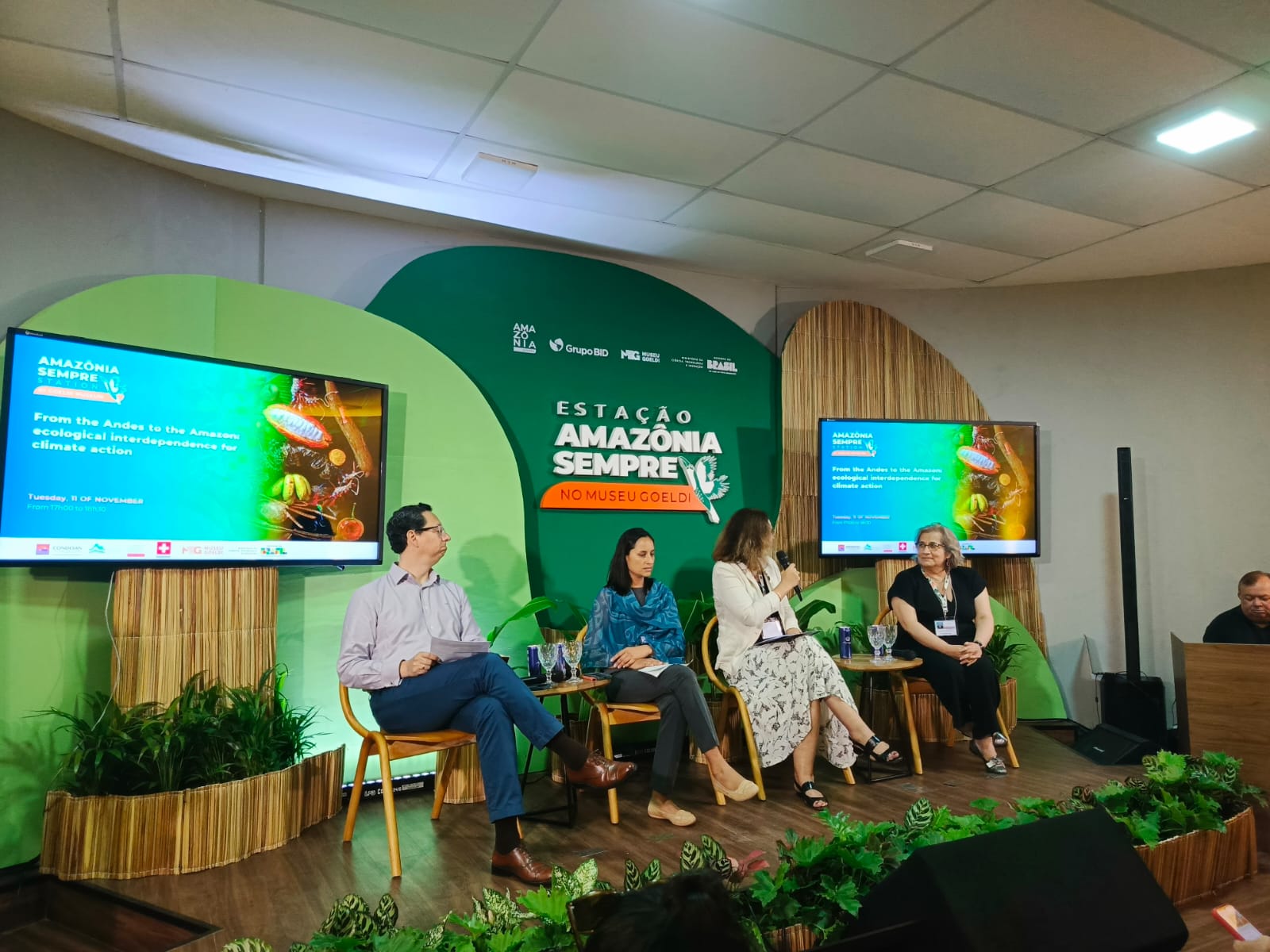 En el evento «De los Andes a la Amazonía: Interdependencia y Acciones Innovadoras para la Adaptación Climática», organizado por la Embajada de Suiza en Brasil y por CONDESAN / Iniciativa de Montaña de los Andes (AMI), la coordinadora participó en el panel de debate «¿Qué lagunas y oportunidades existen para fortalecer la base empírica sobre la conexión Andes-Amazonía y su integración en las políticas climáticas y de biodiversidad? ¿Cómo pueden las alianzas estratégicas y los mecanismos financieros ampliar las acciones conjuntas en la región? ¿Qué mecanismos de gobernanza se pueden desarrollar para gestionar eficazmente la interfaz Andes-Amazonía?». Su participación reforzó la importancia de las alianzas estratégicas, los mecanismos financieros innovadores y los acuerdos de gobernanza capaces de integrar las interdependencias entre los Andes y la Amazonía en las agendas climáticas y de biodiversidad.