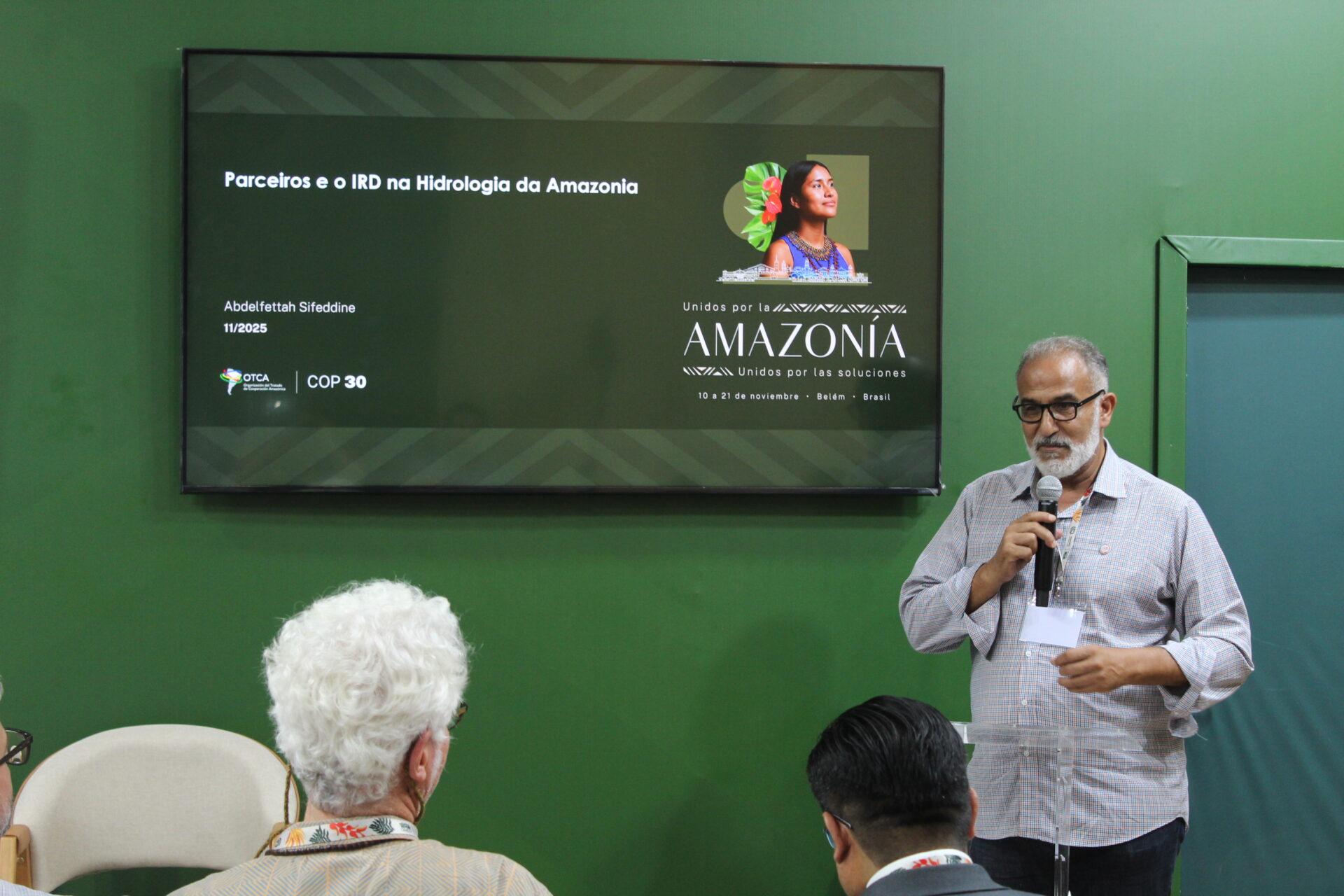 Abdelfettah Sifeddine, representante en Brasil del Instituto Francés de Investigación para el Desarrollo (IRD), destacó la colaboración del instituto con la OTCA en materia de capacitación y recordó que el IRD coordina el Proyecto HYBAM, cuyas estaciones forman parte de la RHA y proporcionan a la ORA información fundamental sobre los procesos hidrológicos. También hizo hincapié en la necesidad de una capacitación continua y de la interoperabilidad tecnológica para reducir las asimetrías entre los países de la región.