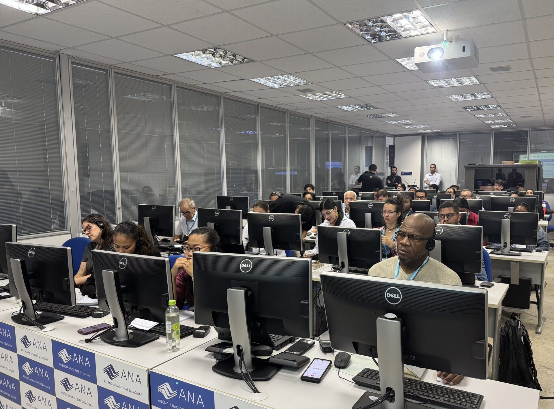 - Participantes do Curso de Hidrologia Espacial durante uma sessão de treinamento realizada em Brasília, nas instalações da Agência Nacional de Águas e Saneamento Básico (ANA) do Brasil.