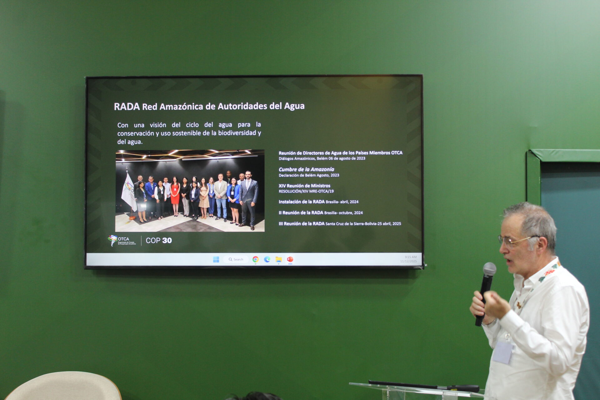 Para aprofundar esse debate e apresentar respostas estruturadas construídas pelos países amazônicos, a Organização do Tratado de Cooperação Amazônica (OTCA) promoveu, na quarta-feira (12), o evento paralelo ‘Da Ciência à Ação: Gestão da Água para uma Amazônia Resiliente’, em seu pavilhão na Zona Azul da COP-30, no Parque da Cidade, em Belém (PA). O encontro reuniu autoridades de água, cientistas e parceiros internacionais para discutir cooperação regional, monitoramento integrado, o papel das geleiras andinas, a gestão dos sistemas aquíferos e mecanismos de financiamento para uma Amazônia resiliente.
