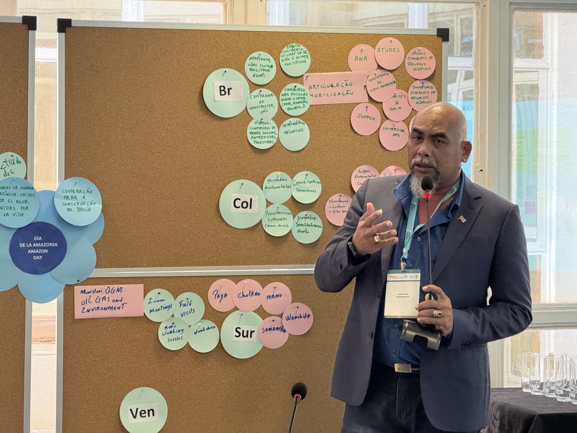 - Exposición de Romano Atmopawiro, representante de Surinam, sobre los pasos a seguir para movilizar a los socios en la celebración del Día de la Cuenca Amazónica.