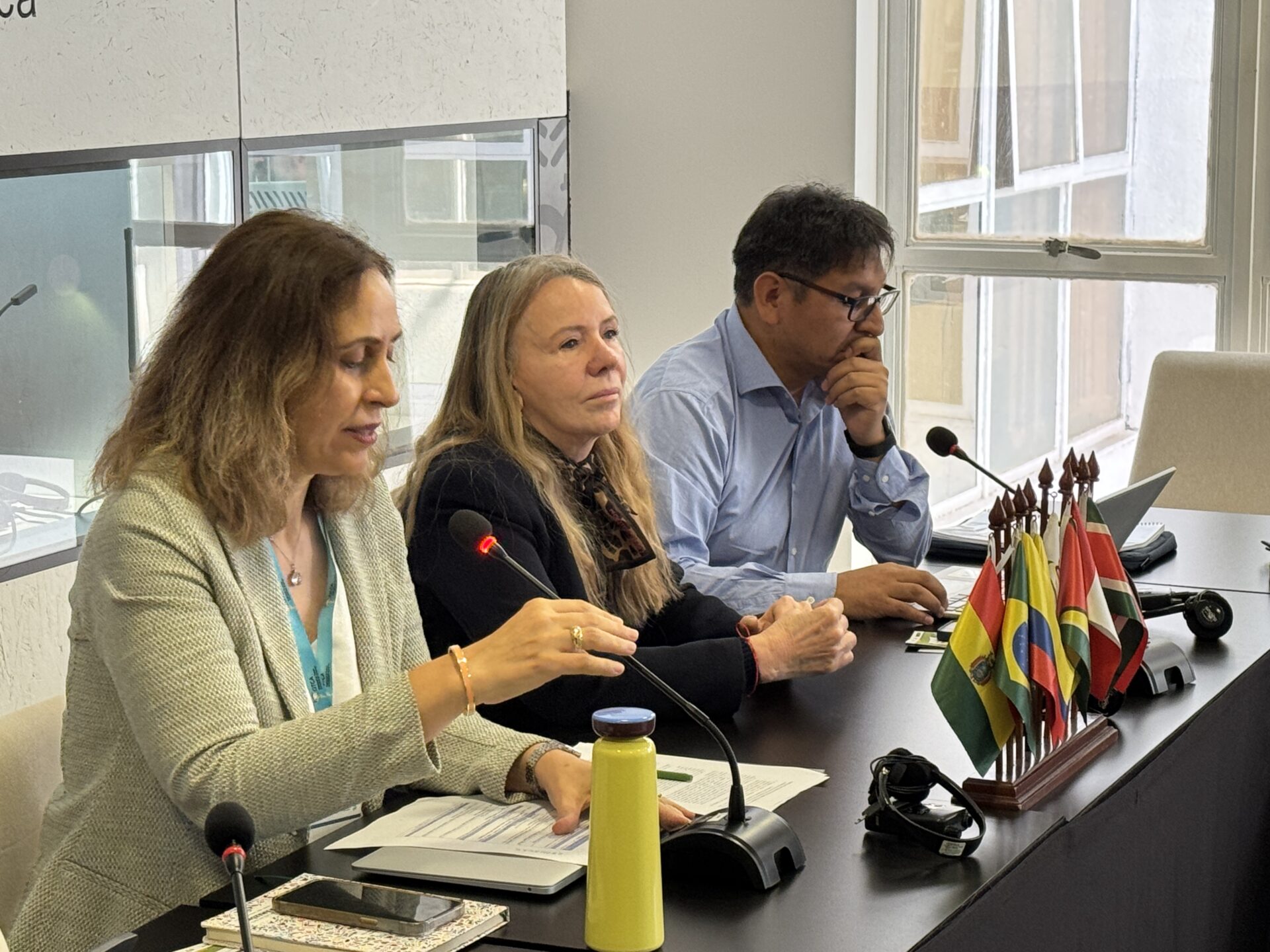 - (De izquierda a derecha) Maria Apostolova, Coordinadora Regional del Proyecto Cuenca Amazónica; Vanessa Grazziotin, Directora Ejecutiva de la OTCA; y Freddy Mamani, coordinador de Asuntos Indígenas (OTCA).